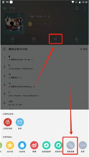 8、然后点击页面中的“分享”按钮,再选择“复制链接”;