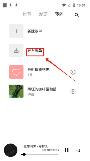 7、返回首页点击上方“我的”,找到“导入歌单”;