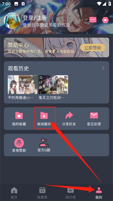 4、最后进入我的板块,点击"离线缓存",即可查看缓存的剧集了,完成缓存就能离线观看。