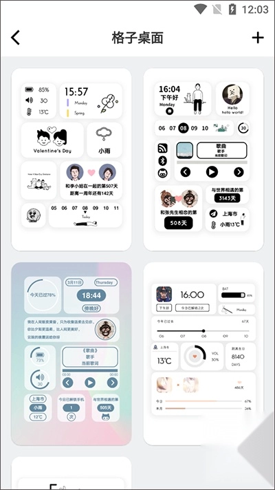 在【格子桌面】页面内,选择喜欢的手机桌面模版;