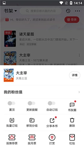 把这本小说加入书架后,你就能在书架里找到它了,还可以设置更新提醒,开启自动订阅功能。