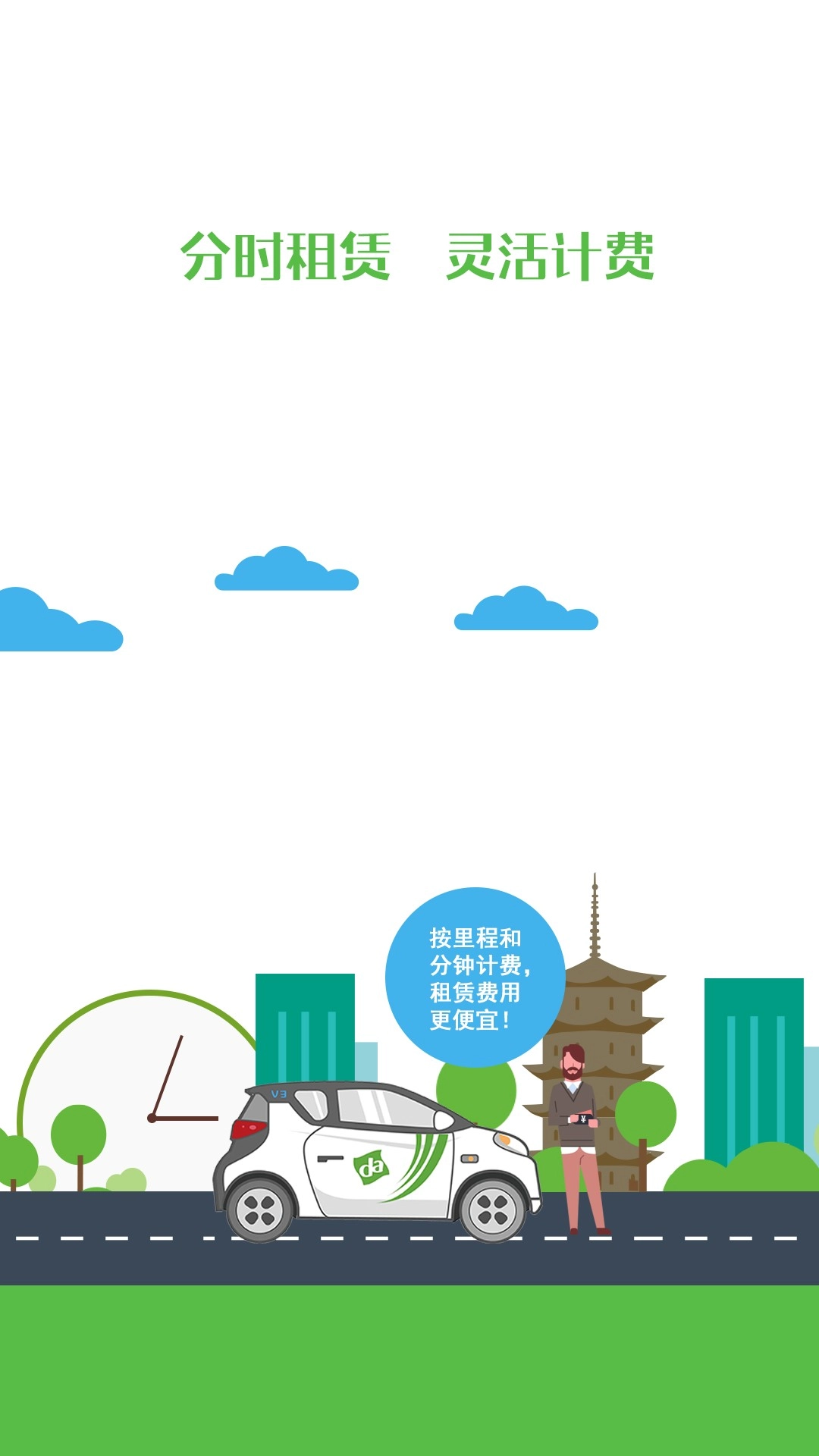 3、租车费用经济实惠,新式的租车方法根据里程与分钟收取费用绝不占用户的一毫便宜;