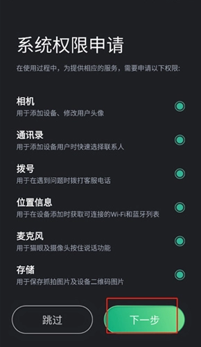 打开德施曼智能锁,完成注册操作后进行授权设置,随后点击下一步按钮。