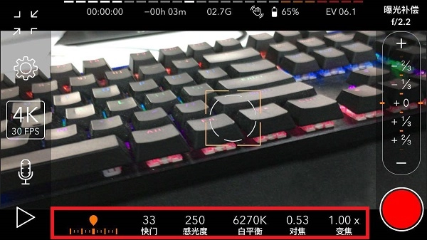 进入软件后,界面上会呈现出一系列专业的摄像参数,大家可依据下文进行调节。