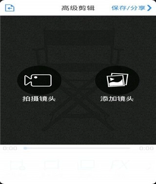 点击“制作视频”后会出现如图所示的界面。若你需要现场拍摄,可使用拍摄镜头;若要使用手机中已有的mp4格式文件或图片,则点击导入镜头(导入时可截取部分镜头,也可选择全部导入)。