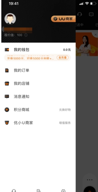 首先打开UU跑腿商家版,点击首页左上角三横线。
