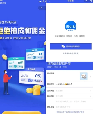 这是UU平台供“商家”入驻和发布商品信息的小程序,商户只需3步就能完成开店流程。在正式开通前,店主就可以提前装修店铺、管理商品,待审核通过后一键开通即可。
