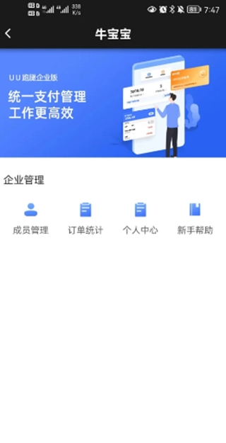 企业管理由成员管理、订单统计、个人中心和新手帮助这四个部分构成。