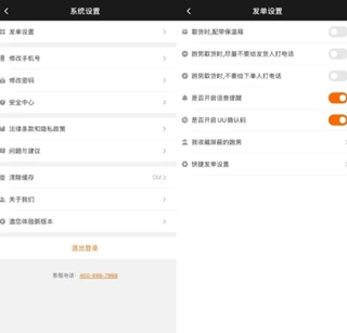 进入后可以查询系统设置的相关功能,比如修改发单设置、手机号、密码,以及查询已收藏或屏蔽的跑男。