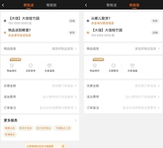 帮我送的操作步骤如下:发单页面参考下图,需填写送货信息、物品信息和备注,同时可以选择由客户支付费用或者自行支付费用。
