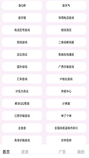 1. 孤情工具箱除了具备丰富的工具功能外,还为用户构建了一个免费资源的宝库,其中涵盖了软件、游戏、音乐、视频等多种类型的资源。