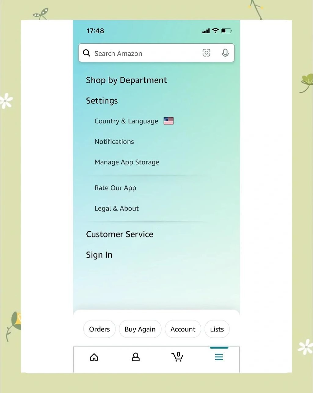 打开亚马逊App后,点击首页左上角的菜单图标,接着滑动页面至底部,找到“国家/地区与语言”选项,然后进入对应的设置界面。