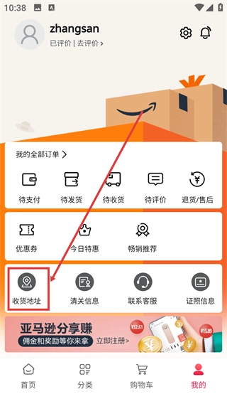 打开【亚马逊海外购】的首页后,点击底部导航栏中的【我的】选项,就能进入个人中心进行相关操作。