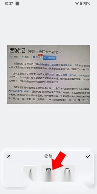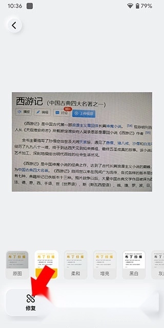 在预览界面里,要是图片有明显摩尔纹影响观看效果,能使用修复工具来处理,点击左下角的修复按钮就能进入功能菜单。