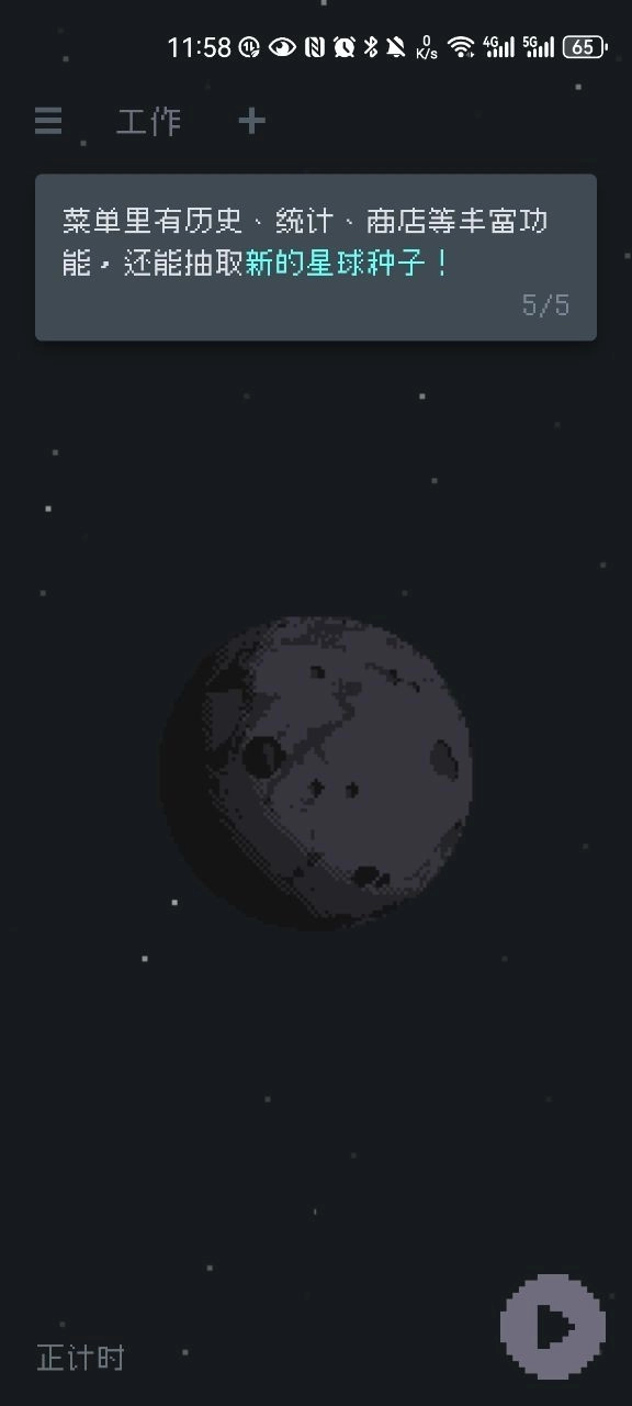 首先挑选自己钟爱的星种,再选定需要计时的事项,我这里选的是“火星”和“工作”相关事项。还能切换专注计时的模式,包括正计时、番茄计时、倒计时以及硬核模式。