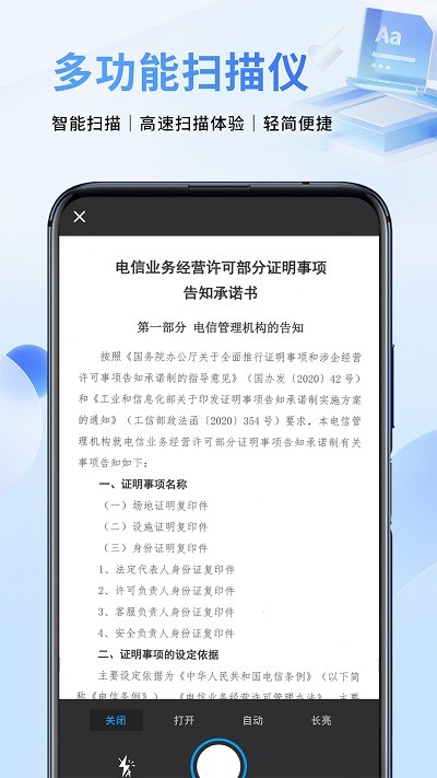 它提供了文件扫描功能,可以帮助用户快速扫描各种纸质文档。