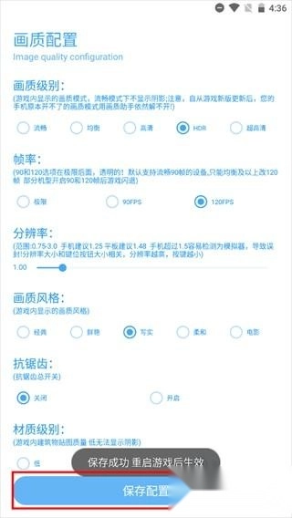 选好你想要的配置,点击“保存配置”按钮,之后重新启动游戏就可以了