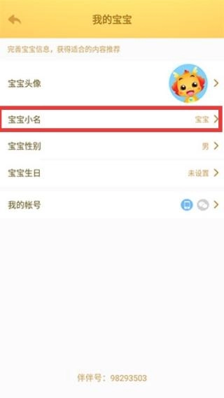 3、在【我的宝宝】页面,点击【宝宝小名】栏,即可修改宝宝的小名信息。