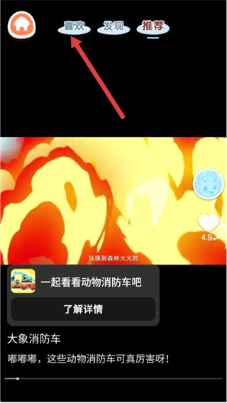 2、进入视频播放页面,点击爱心图标,可对当前内容进行点赞互动。