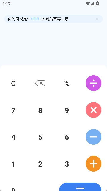 之后每次打开软件,显示的都是计算器界面,输入密码就能进入软件主界面了。