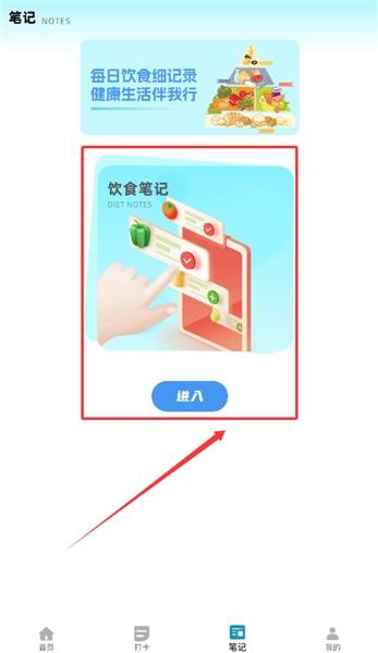 3、每天做完菜可以到笔记页面,点那个蓝色进入键记录下吃了什么,方便回顾呢。