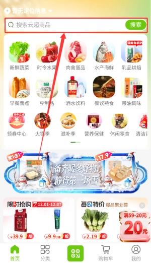3、在首页顶部搜索框输入商品关键词,即可快速检索对应商品信息,精准锁定所需食材。