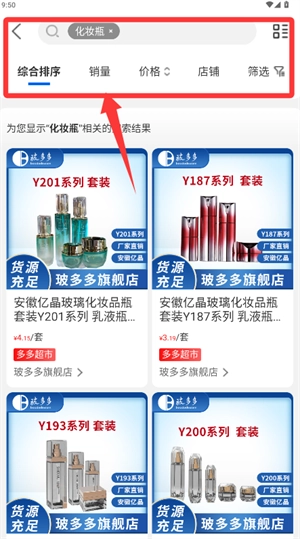 3、在对应板块页面的搜索栏输入商品关键词,支持多种排序方式筛选商品,精准锁定采购目标。