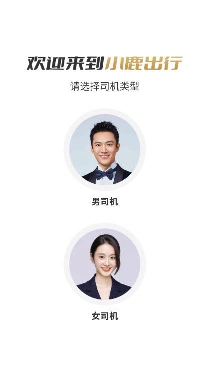 您可以根据自身需求选择司机的性别类别,系统设有男司机和女司机两个选项,点击相应图标即可继续后续操作。
