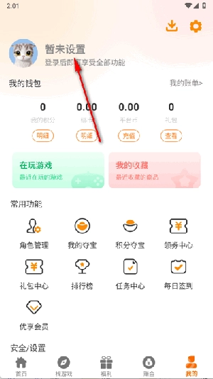 打开乐逸趣玩点击我的,再点击头像。