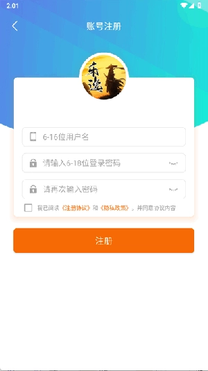输入用户名密码点击注册即可。