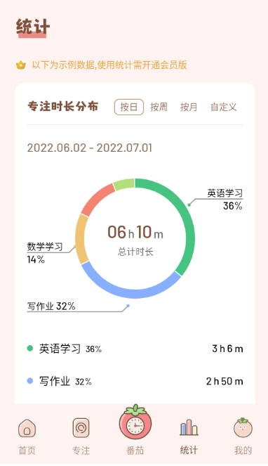 数据统计:从多个维度查看专注时长与变化趋势,完整记录各项任务的专注过程