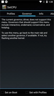 最后,大家可以根据自己的需求勾选“开机时设置”选项,这样就能让该功能在开机时自动启动。通常情况下,CPU会根据实际需求自动调节频率,因此这种设置在省电方面的效果可能不太明显,更多是一种尝试。SetCPU更多是被游戏玩家用来在玩游戏时锁定较高的频率,以确保游戏运行流畅,具体的设置方法这里就不再详细说明了。