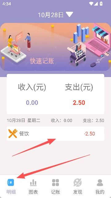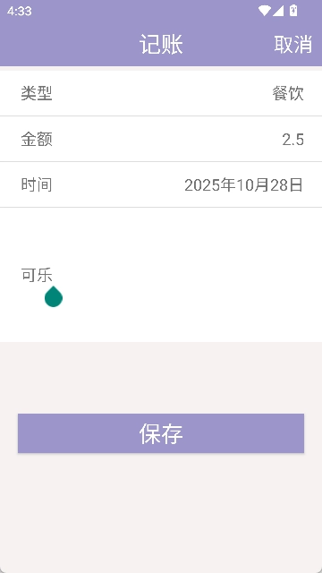 选择记账种类,比如说【支出】,类型选则【餐饮】