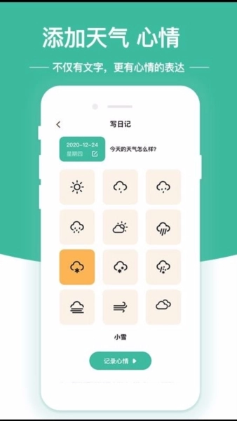 天气、心情、活动标签,轻松标记每一天,帮你解决日记难保存、复杂心情难表达的问题