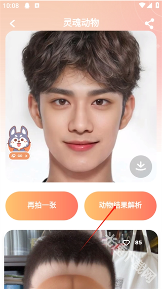 3、拍摄完成之后系统将自动辨别以及更改形象,使得照片转变为具有个人特色的小动物,如果想要保存可以点击右下角的处;