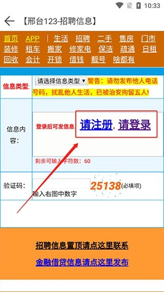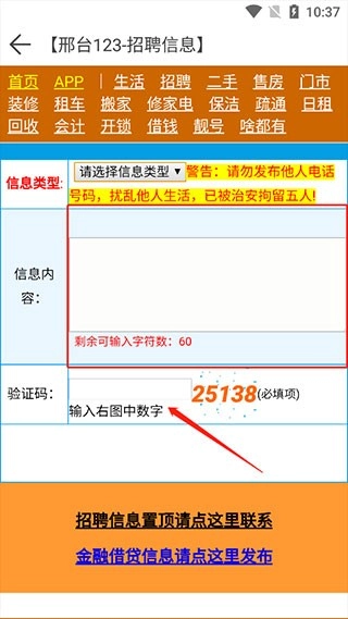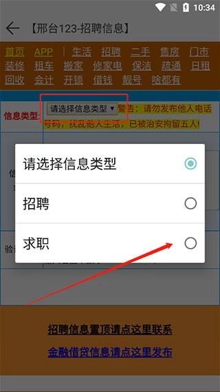 5、然后选择信息类型,在这里可以点击求职或者招聘