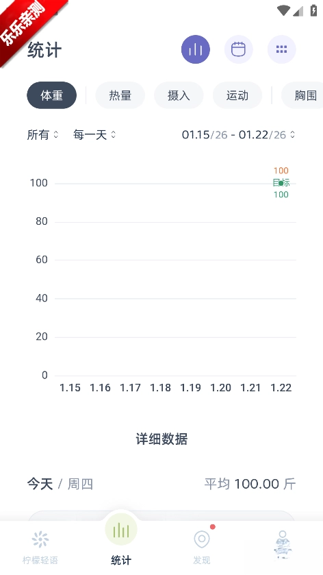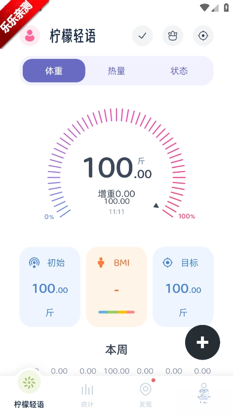 进入柠檬轻语首页,可记录每日体重,热量,状态等