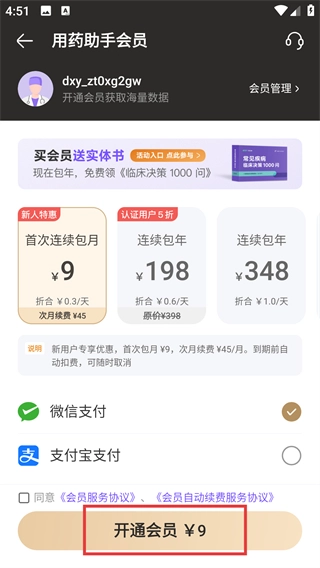 3、进入会员开通页面,选择对应套餐后,点击【开通会员】按钮,可触发协议确认弹窗。