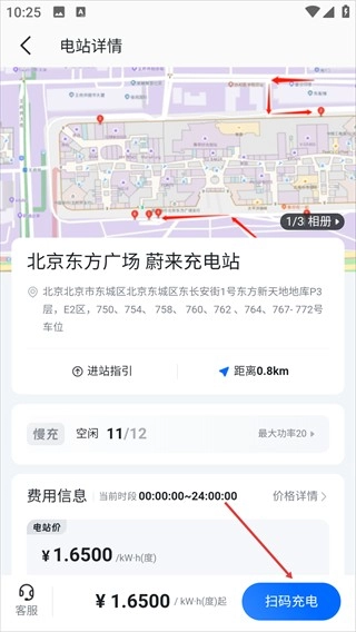4、点击底部的【扫码充电】按钮,就能启动该电站的充电流程了。