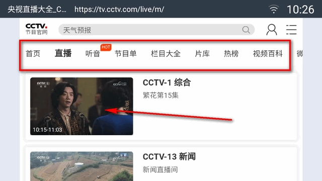 5、这里小编以“cctv”频道为例,点击即可播放。