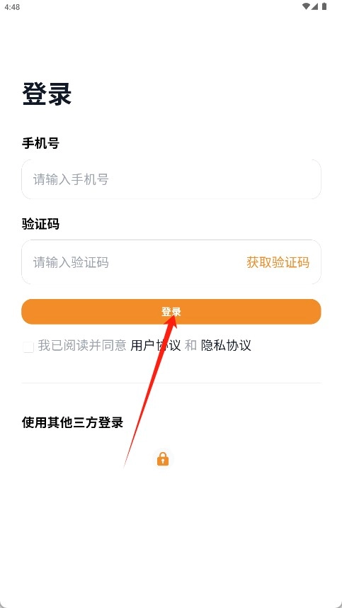 1、在登录页面输入手机号和验证码后点击登录按钮。