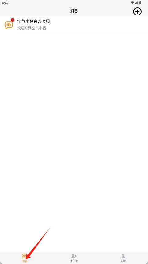 2、登录成功后点在首页击底部 “消息”。