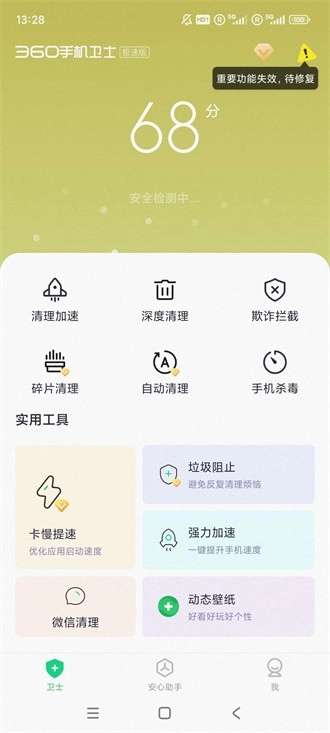 360手机卫士极速版具备丰富多样的功能,可从多维度助力用户解决手机安全相关问题。其功能覆盖手机内存清理、病毒查杀、数据安全防护等多个方面,能一站式满足用户对手机使用需求及安全保障的要求。