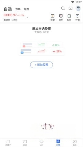 行情版块支持添加自选股票,助你每日轻松查看,随时掌握个人投资动态。