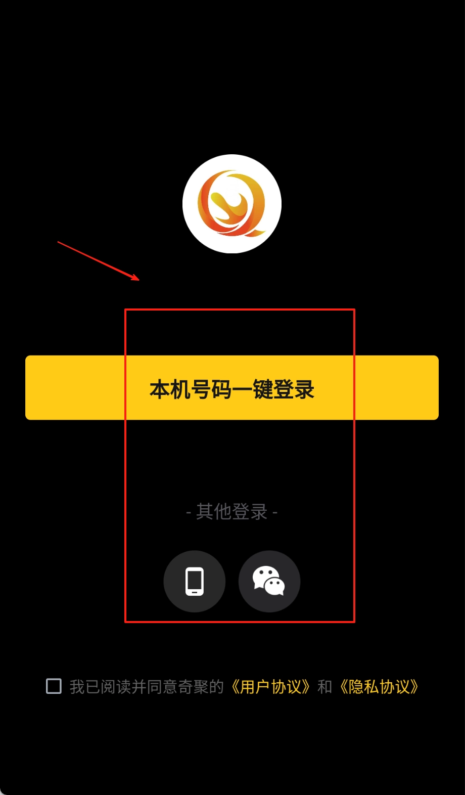 本机一键登录请点击中间的黄色大按钮,确认授权相关权限后即可秒速进入软件;若选择其他方式登录,记得勾选同意协议的小方框哦。