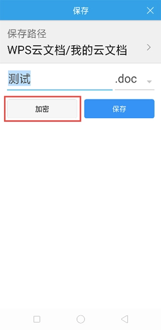 方法一:用户新建文档后进行保存操作时,界面会出现「加密」选项,点击该选项就能开展加密设置。