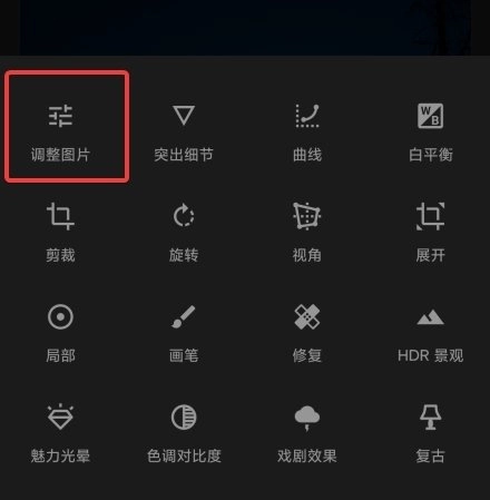 打开图片后,点击右下角的画笔图标,选择【调整图片】选项,可对图片的亮度、对比度、饱和度、氛围、高光、阴影、暖色调等参数进行选择性调整。