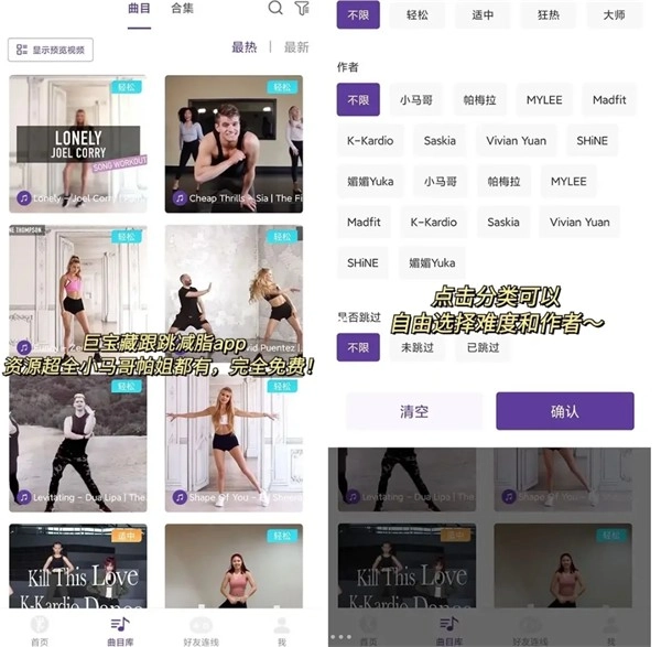 曲目难度有清晰的划分标准,无论是刚接触跳操的新手,还是经验丰富的舞池高手,都能找到适合自己的内容。在Poser里,曲目难度共分为四个等级,按照从易到难的顺序依次是:轻松、适中、狂热和大师。你可以依据当下的身体状况以及对曲目熟悉程度,自主挑选最契合自身的曲目,从而实现科学运动的目标。