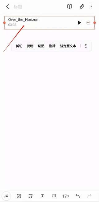 6、随时可在三星笔记插件中,查看到刚才所添加插入的音频文件选项。