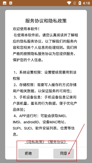 1、在使用本软件前,请务必阅读【服务协议和隐私政策】,并了解系统设置中关于存储等权限的相关说明。确认无误后,点击【同意】按钮,即可进入软件使用各项功能。